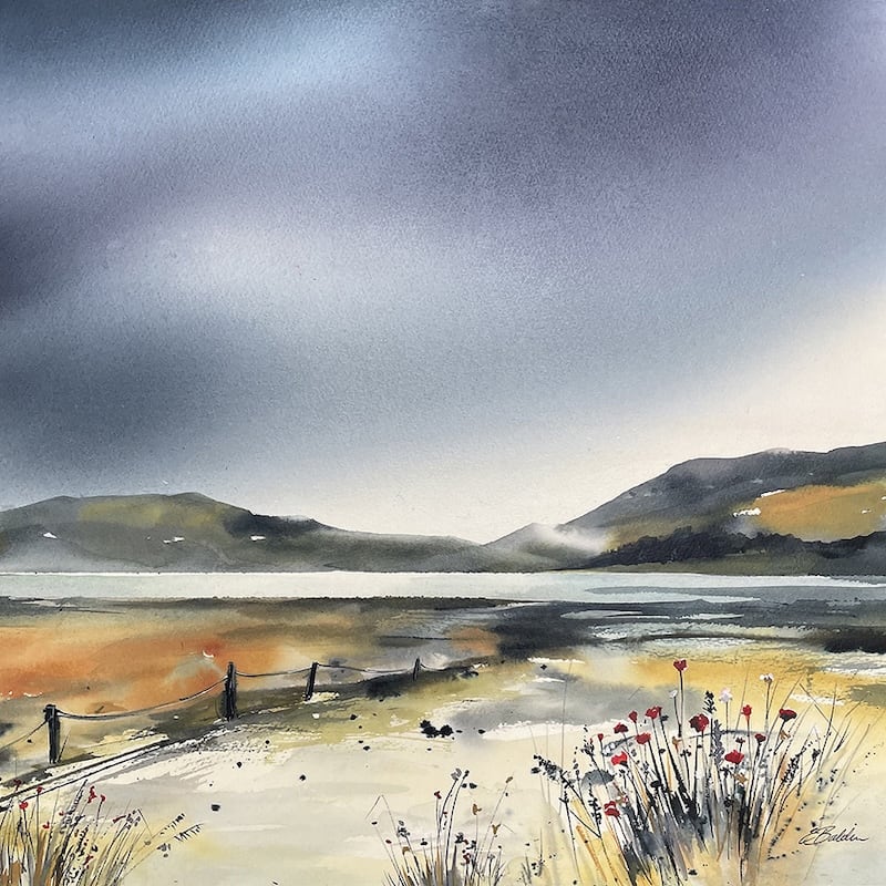 I work in most media, but currently I am working with inks, watercolours and acrylics which I use to create atmospheric landscapes and seascapes. My aim is to capture the light and atmosphere of the surroundings, often at dawn or dusk and particularly in the Lake District and the Scottish Highlands and Islands where the views are so inspirational and dramatic.