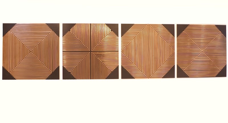 The outcome are captivating installations with geometric repeat patterns mostly made from metal and glass.